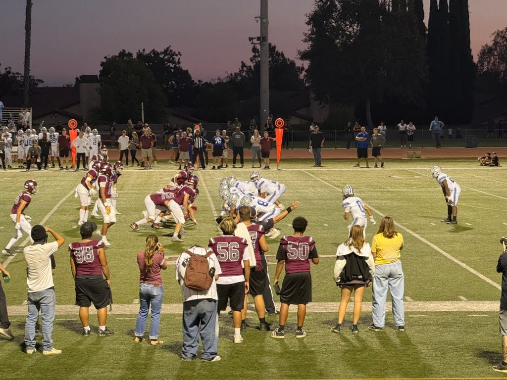 #1 and I went to the Claremont HS football game last Friday night. Fun atmosphere and a perfect California night for it.