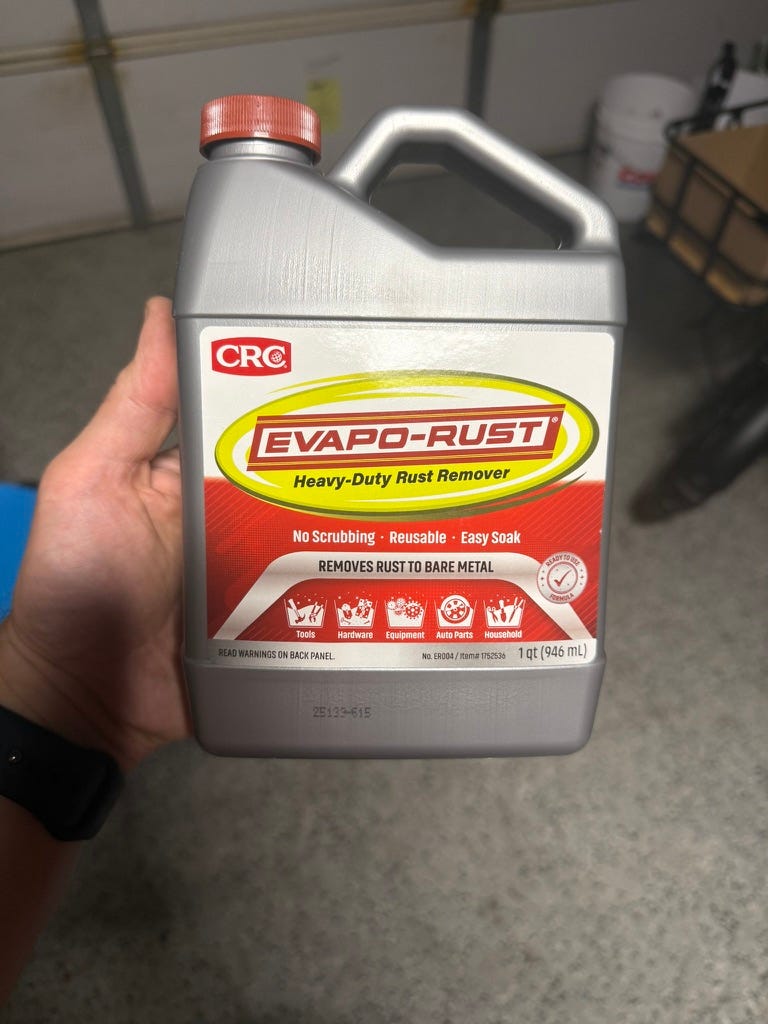 I’m not sure who needs to hear this, but this Evapo-Rust stuff works like gangbusters. I got it to revitalize a few parts on my bikes, and after letting them soak in this stuff overnight, you’d never know they were rusty to begin with. h/t to this YouTube video from Adam Savage (of Mythbusters fame) for turning me on to this stuff.