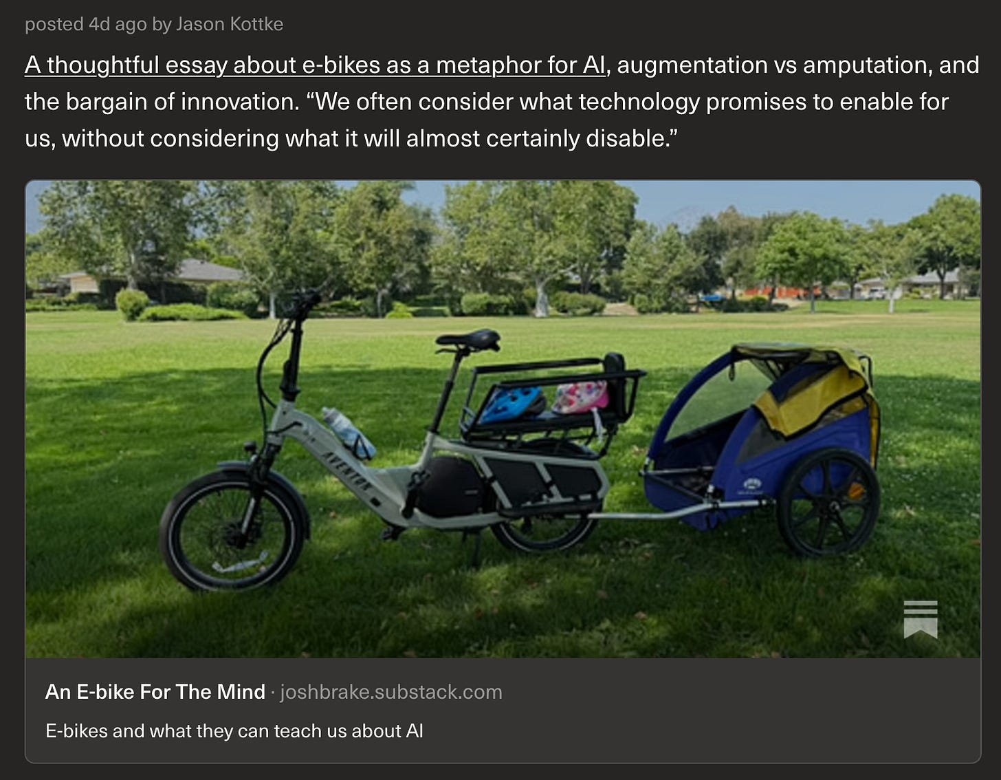 Also, pretty cool to see my e-bike on kottke.org last week.