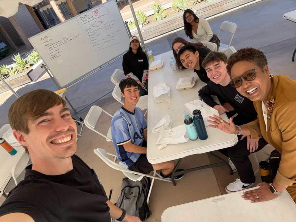 I had my first lunch meeting with the students who are the new Fellows as part of my Lab for Imaginative Prototyping with AI. As we were meeting, President Nembhard just happened to walk by and stopped to chat for a few minutes. Really excited to get to work with these folks!