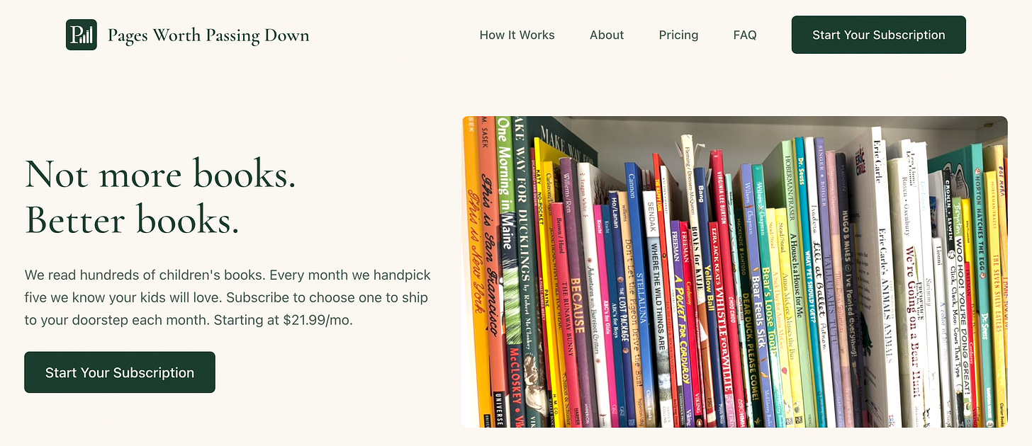 If you’ve been around these parts for any length of time, you know the Brakes are big fans of children’s books. Exhibit A: last week’s post. Well, this week, the Mrs. and I cooked up an idea to help build a product to share our love of children’s books with you: Pages Worth Passing Down, a subscription box for children’s books.