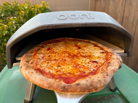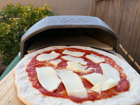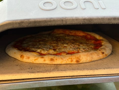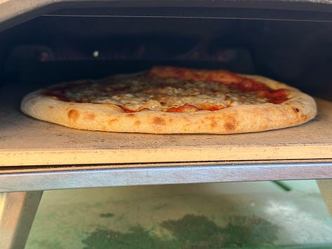 Experimented with a 67% hydration dough last weekend and a new cheese strategy (slices vs. shredded cheese). Pretty happy with how it turned out (minus the one pie that I had to pitch because it got stuck to the peel—oops!).